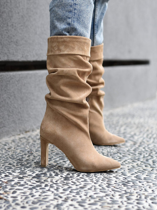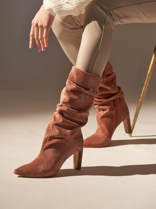 Δερμάτινες σουέτ ταμπά μπότες ELDANE Phoebe με μεσαίο τακούνι. Σχέδιο που σουρώνει με ύψος μέχρι...