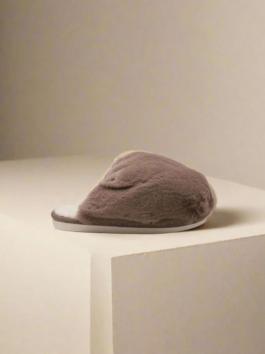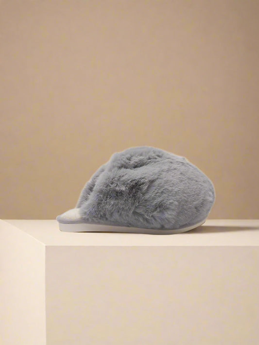Χαρίστε στον εαυτό σας πολυτέλεια με τις WORKSHOP Tinker Grey παντόφλες. Η ουδέτερη γκρι faux‑fur...