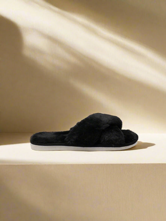 Αναβαθμίστε τη χαλάρωσή σας με τις WORKSHOP Sally Black παντόφλες. Κατασκευασμένες από απαλό μαύρο ψεύτικο...