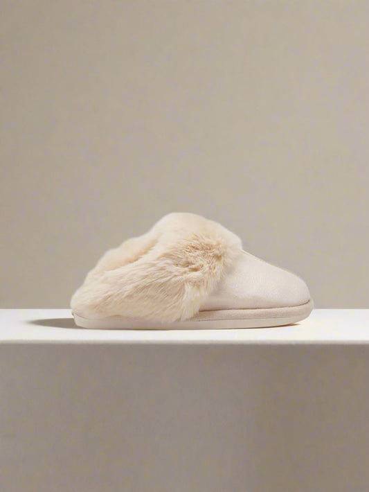 Γυναικείες παντόφλες slip-on με επένδυση γούνας σε μπεζ Υλικό: Βελούδο / Οικολογική γούνα Σόλα: Non-slip λάστιχο Εσωτερικό:...
