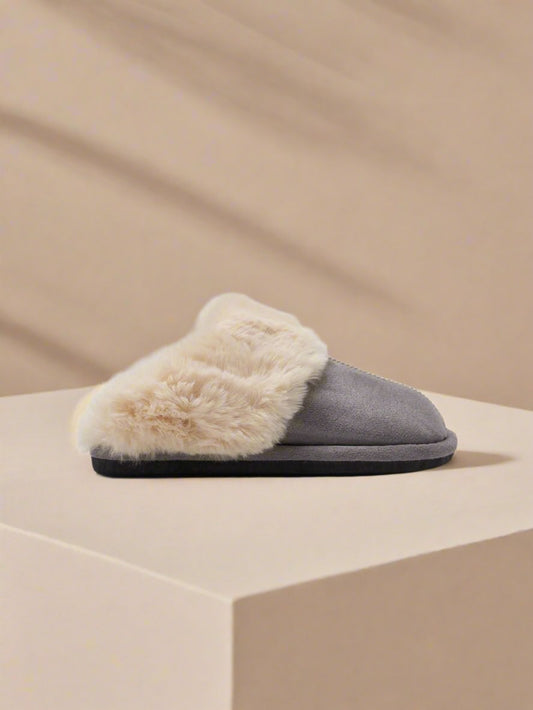 Γυναικείες παντόφλες slip-on με επένδυση γούνας σε γκρι Υλικό: Βελούδο / Οικολογική γούνα Σόλα: Non-slip λάστιχο Εσωτερικό:...