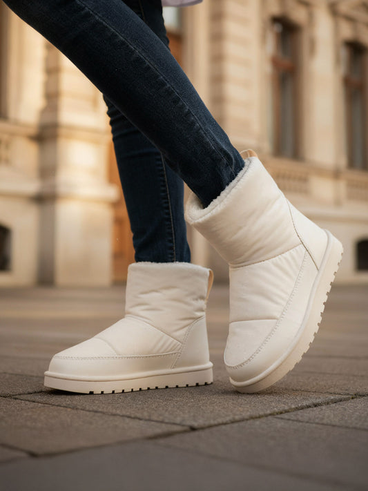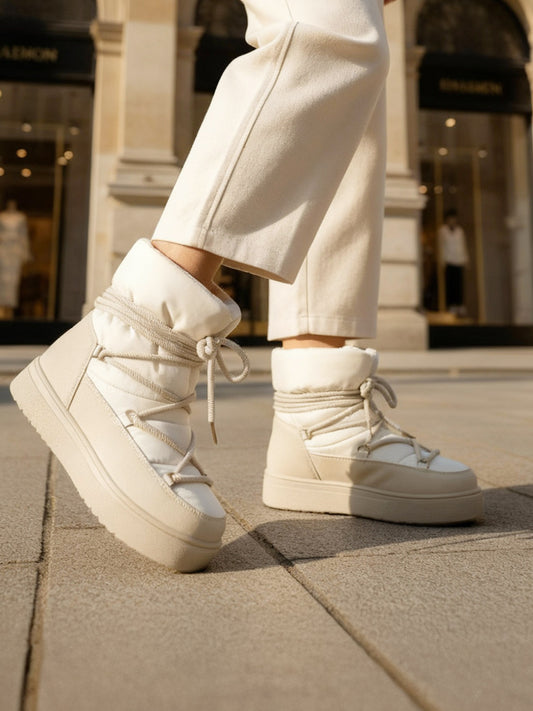 These trendy beige winter boots combine style and practicality. Featuring a quilted design and padded...