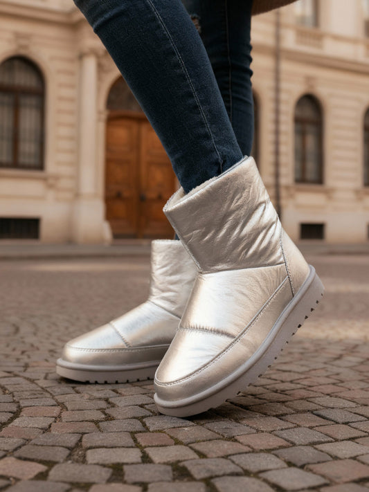 These stylish silver ankle boots are made from durable synthetic fabric, offering water-resistant properties for...
