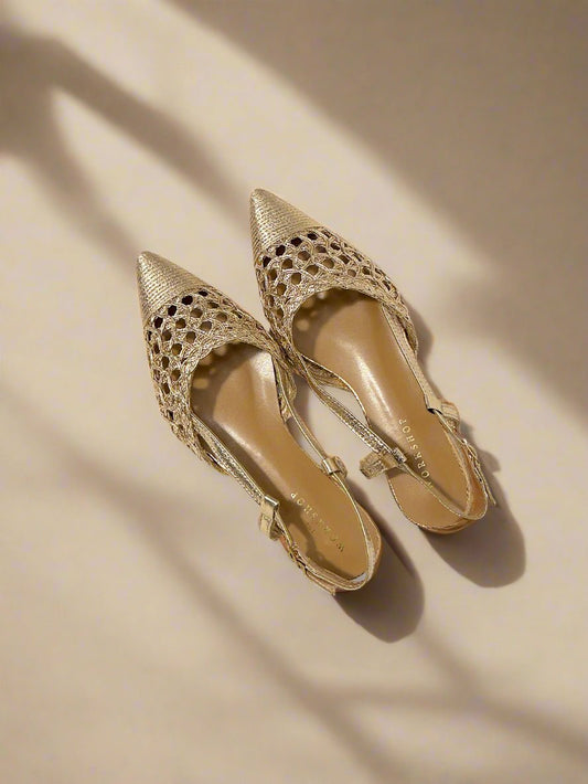 Effortlessly chic and refined, our Vicky Gold ballet flats elevate any outfit. Adorned with luxurious...