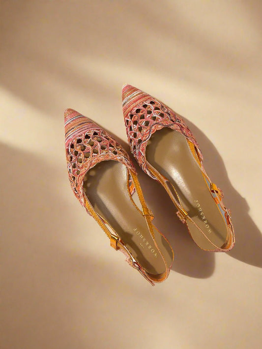 Add a splash of color to your step with these vibrant slingback flats, featuring a...