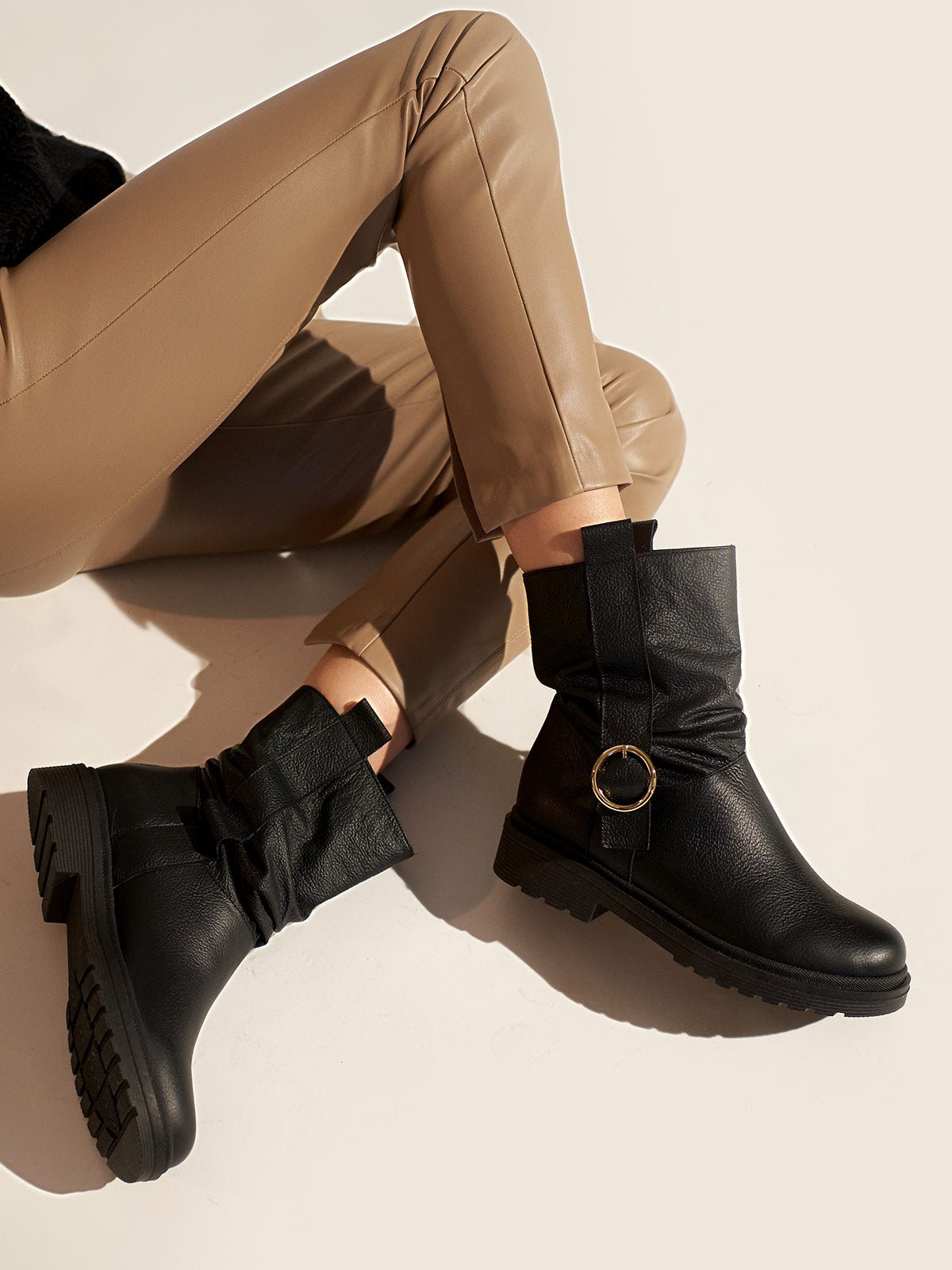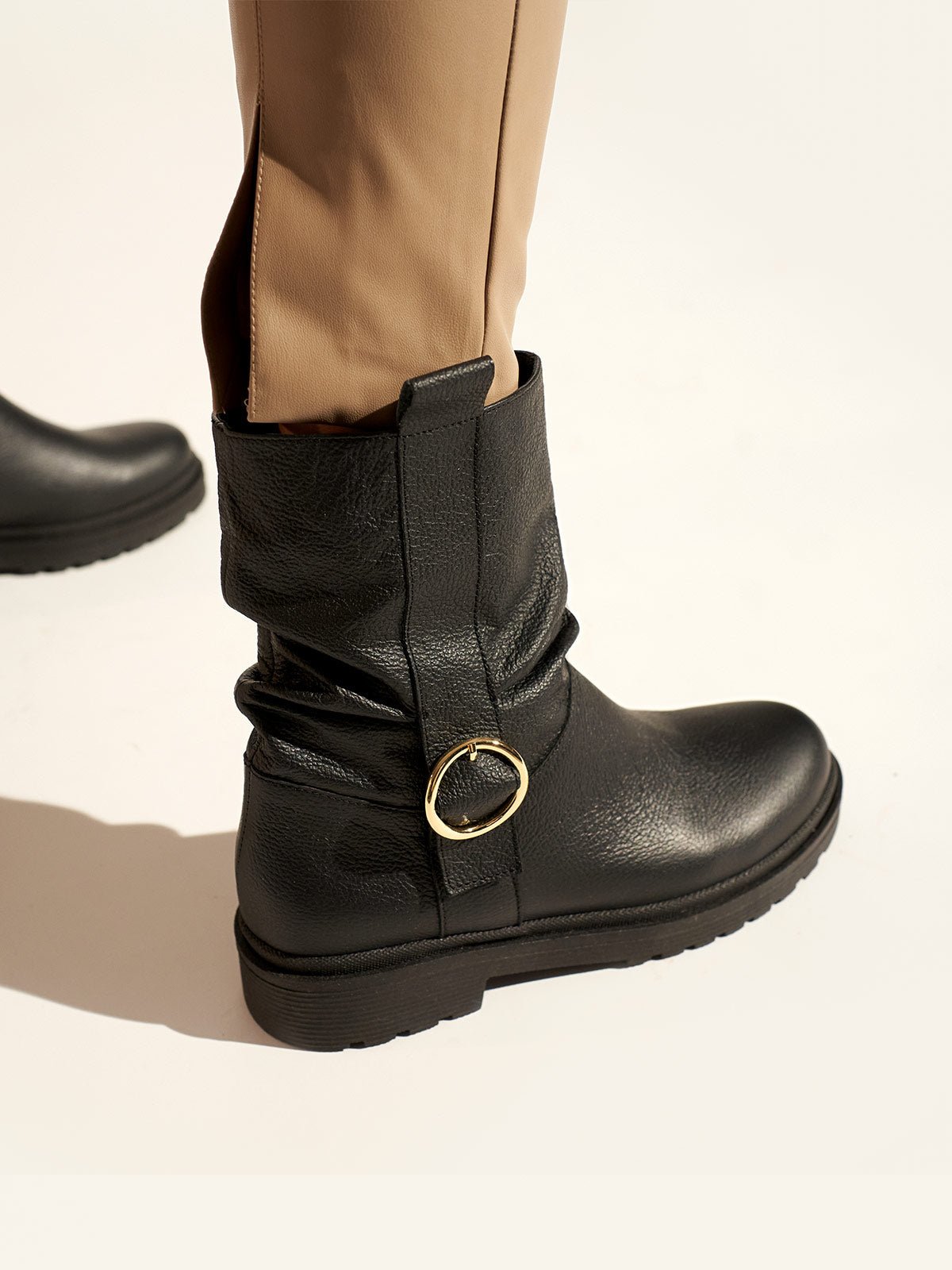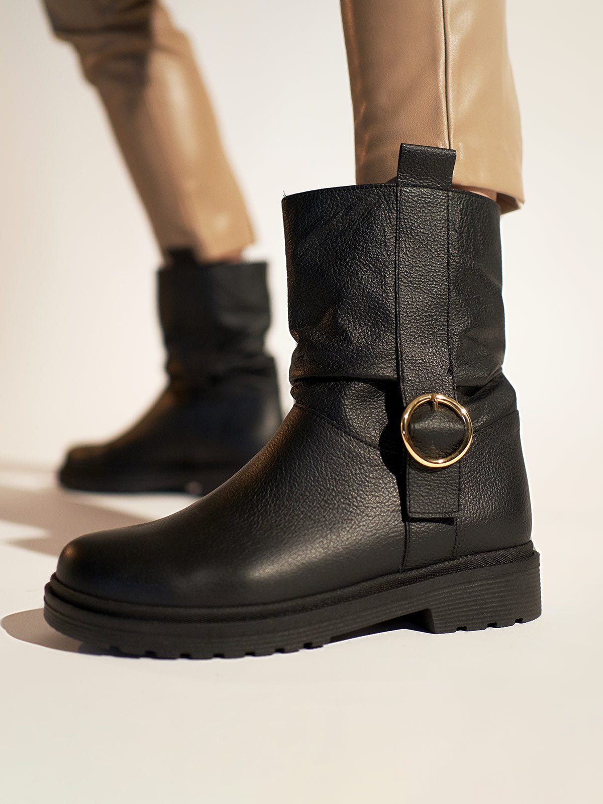 The Morgan biker boots are a practical choice for fall - the gripped rubber soles offer plenty of traction, ideal for facing the elements. They've been made from supple leather and have elegant golden buckles so you can elevate your style. Wear yours with dresses and jeans alike.